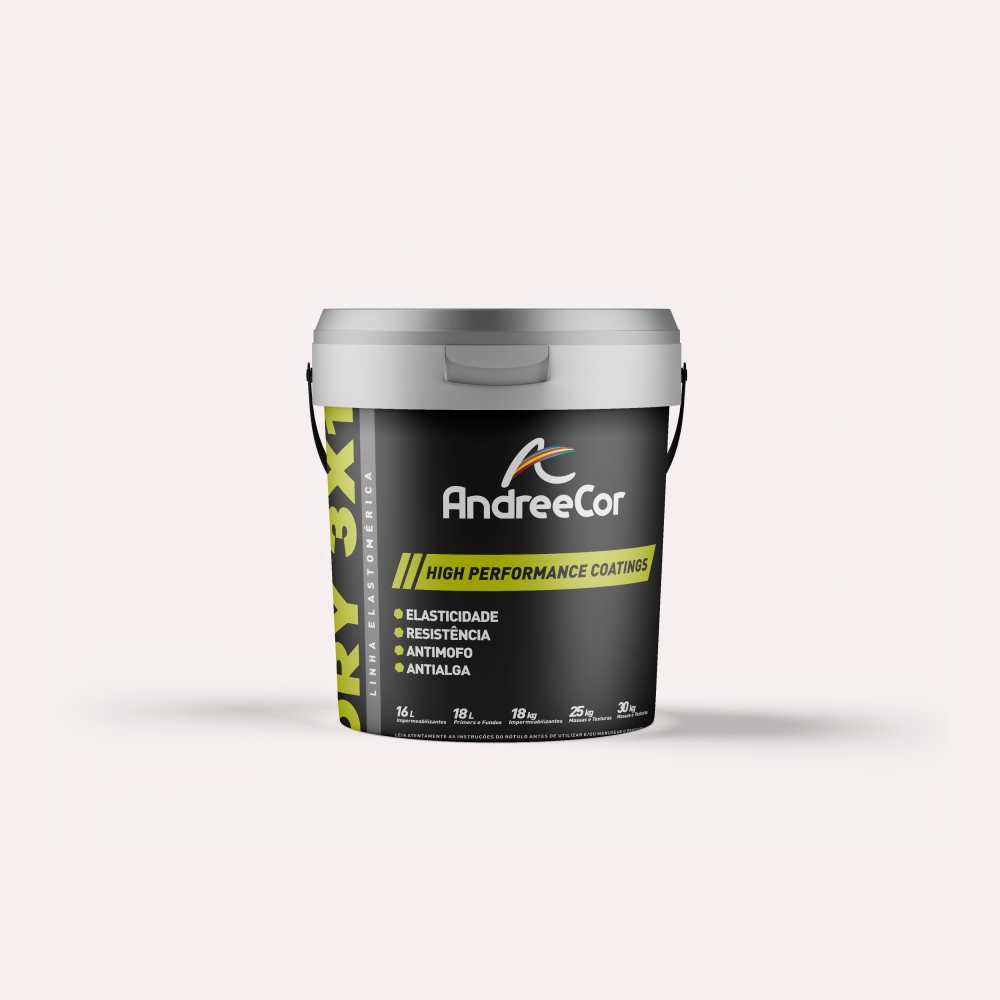 Bases (P/M, F, T) para o sistema tintométrico.O Impermeabilizante Elastomérico 3 em 1 da AndreeCor atua como: Selador, Impermeabilizante e acabamento. É um produto acrílico elastomérico destinado a impermeabilizar e proteger superfícies externas, através da formação de uma membrana elástica de alto desempenho, superflexível e impermeável, que reveste as lajes, paredes e telhados impermeabilizando a área pintada e se adaptando às variações de dilatação ou retração da superfície.
